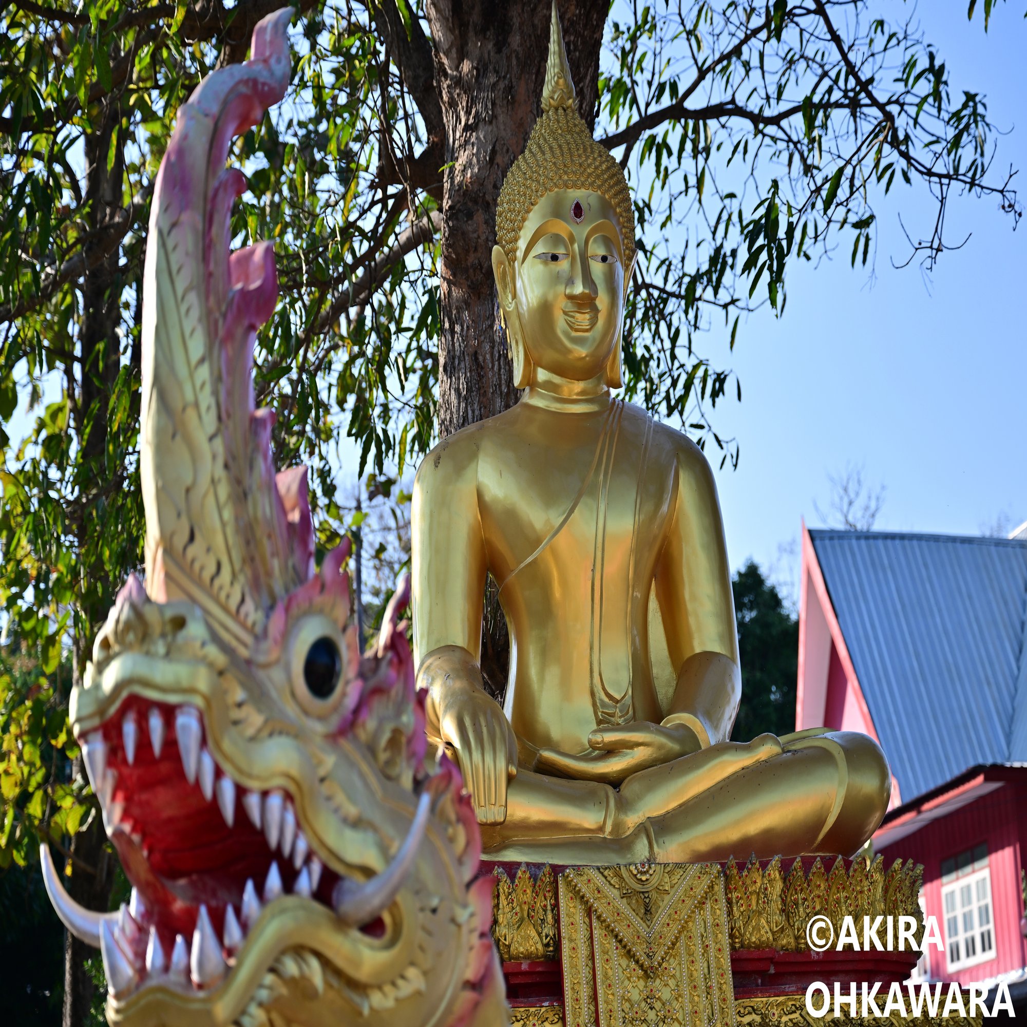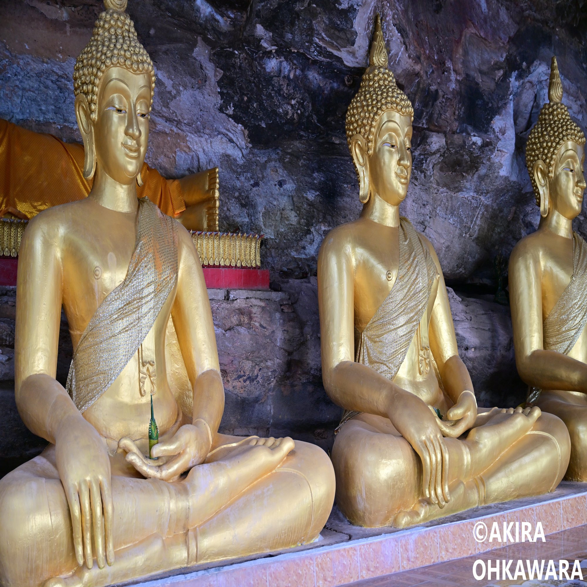 銅鑼はASEANの国旗が描かれたもので、直径20メートル、高さ26メートル、重さ18トンと迫力満点です。展望台からは国際河川のメコン川と対岸のラオスを眺めることが出来ます。洞窟には多数に仏像が納められています。