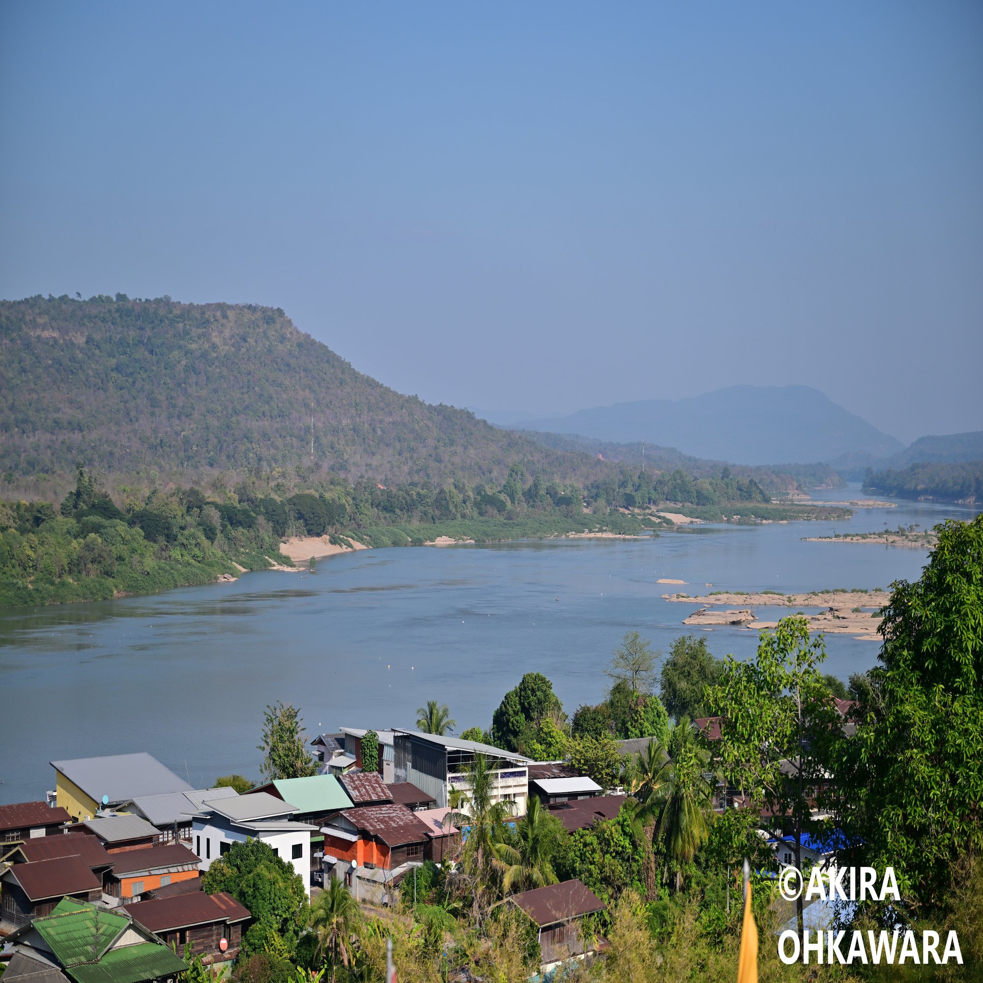 ムン川と国際河川であるメコン川の合流点を眺めることができます。泥を含んで茶色に濁ったメコン川に対して、ムン川は青みがかかった色をしています。