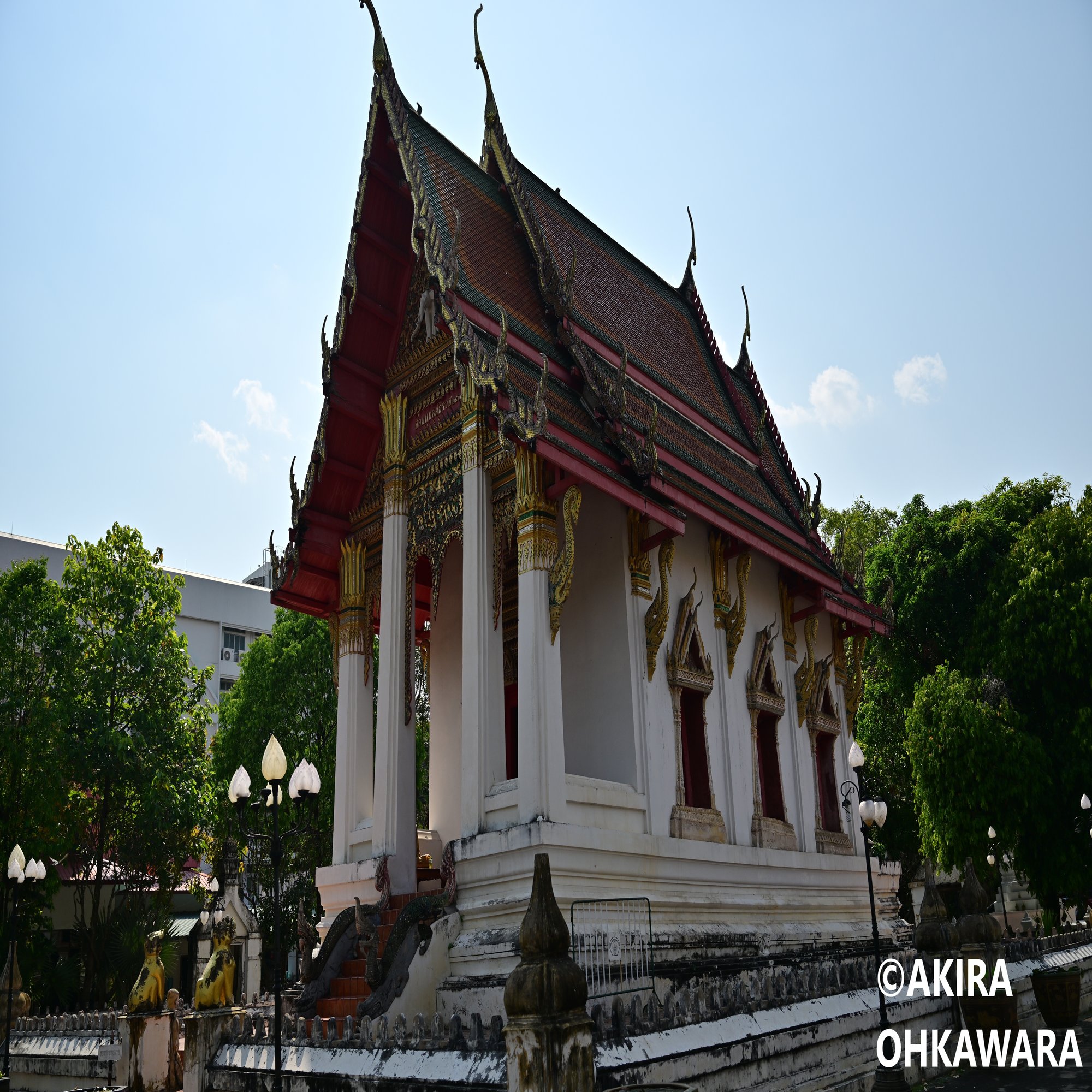 ムン川に近い寺院。白い本堂の建物が美しかったです。