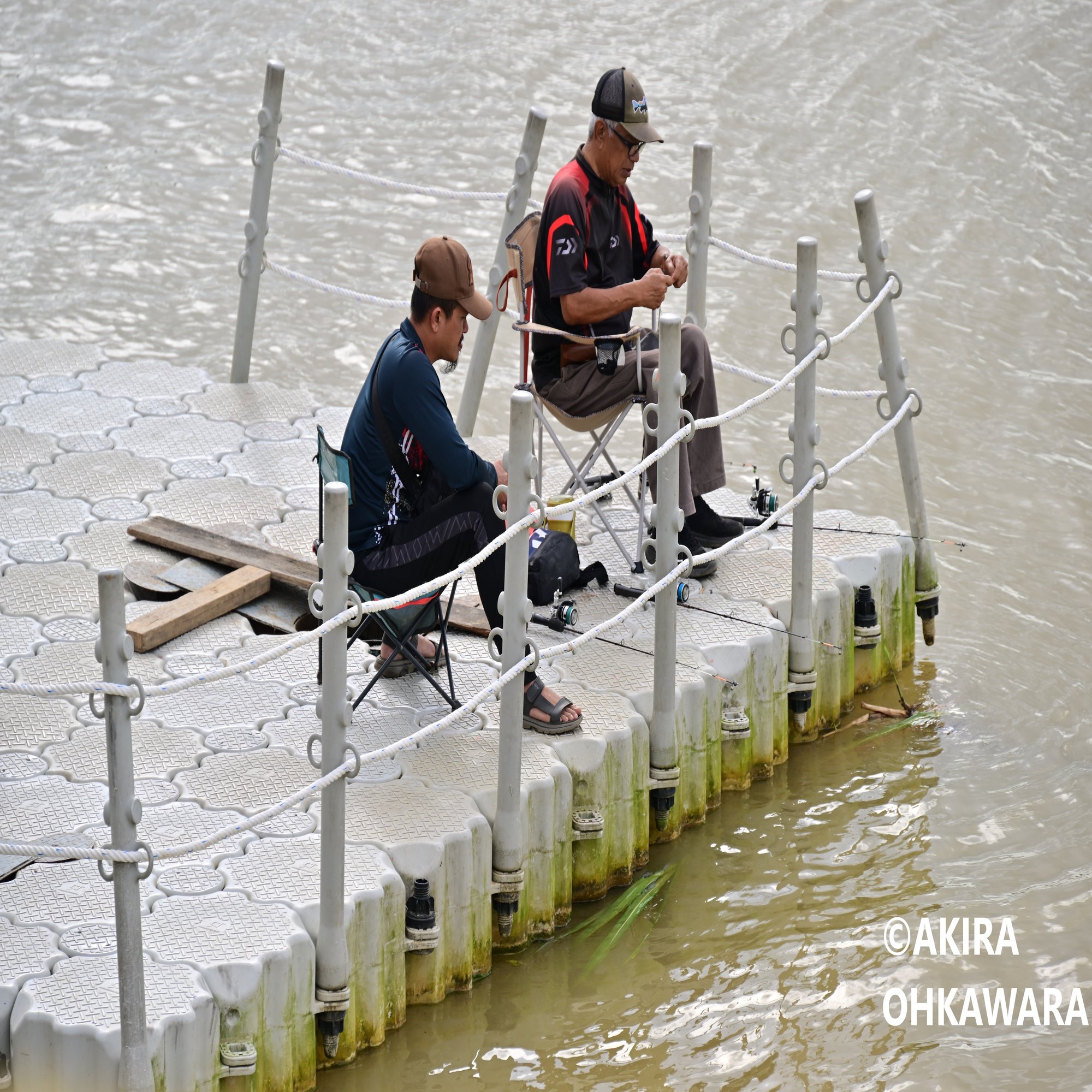 コタバル市街地を流れる川。色は茶色く濁っていますが熱帯らしい川。遊歩道が整備されているので散歩を楽しむ人や釣りを楽しむ人々がいました。